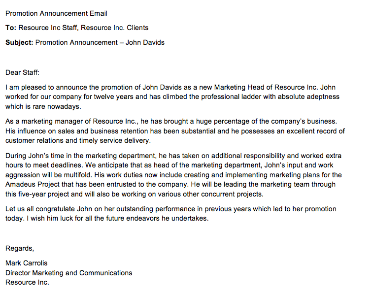 It is my pleasure to announce that employee name will be joining our team as a job title on start date.